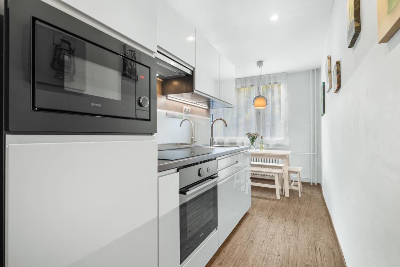 Two-Bedroom Apartment. In the kitchen, guests will find a stovetop, a refrigerator, kitchenware and a microwave. Boasting a balcony with mountain views, this apartment also features a coffee machine and a flat-screen TV. The unit has 3 beds.